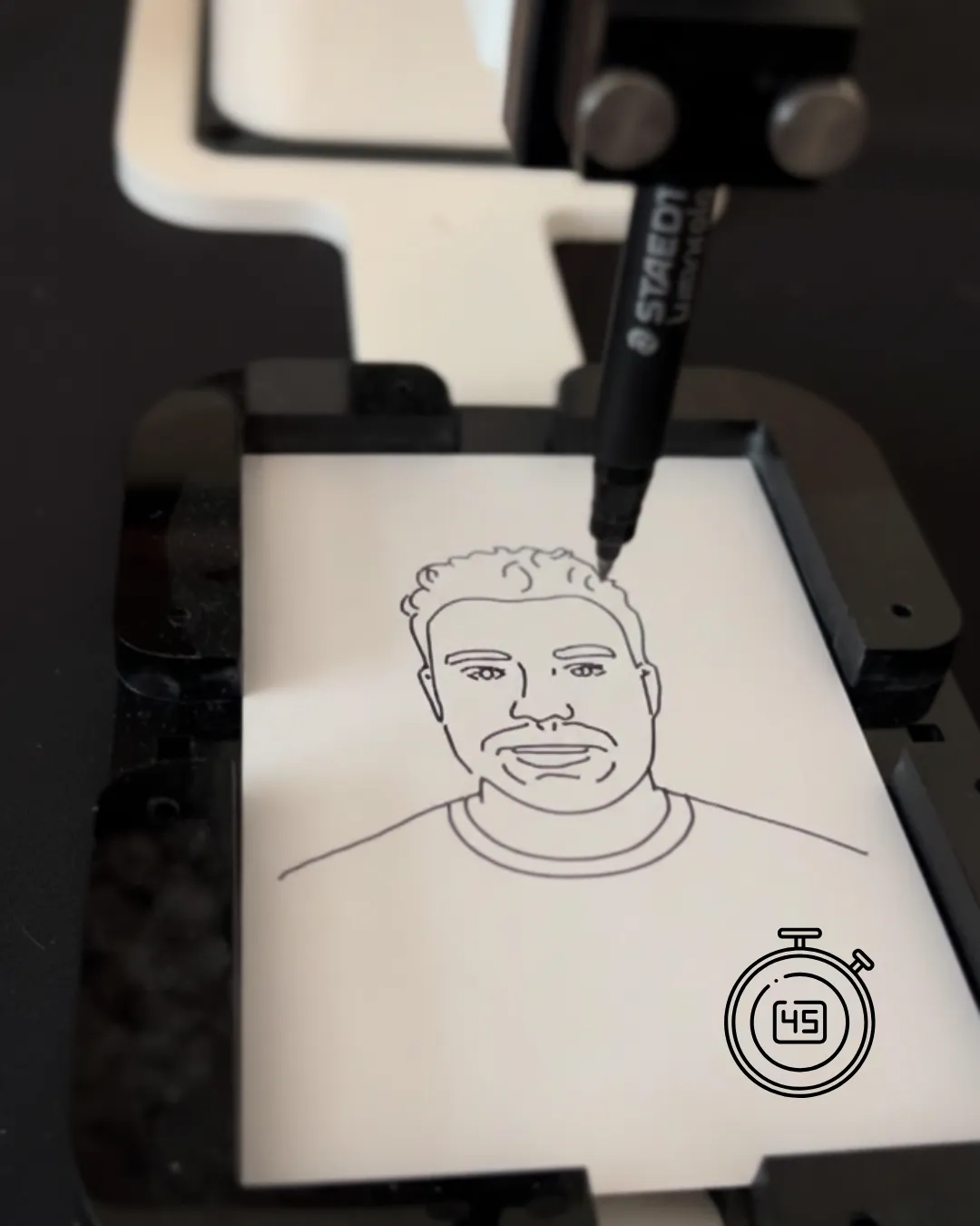 Time is precious at events — that’s why each sketch takes an average of 45 seconds! Our bots work fast so more guests can join in on the fun. Watch as the pen glides with precision, turning snapshots into stunning line art before your eyes.