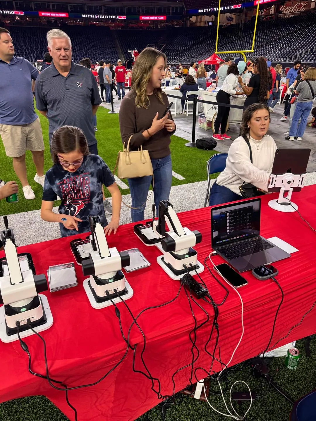 For each event, we'll come prepared with a table, tablecloth, lights, bots, a laptop, and an iPad. The number of bots we bring may vary on the type and size of event, but you can expect either 1 - 3 bots. All we require from you is a working electrical outlet within 10ft of where you want us to set up.